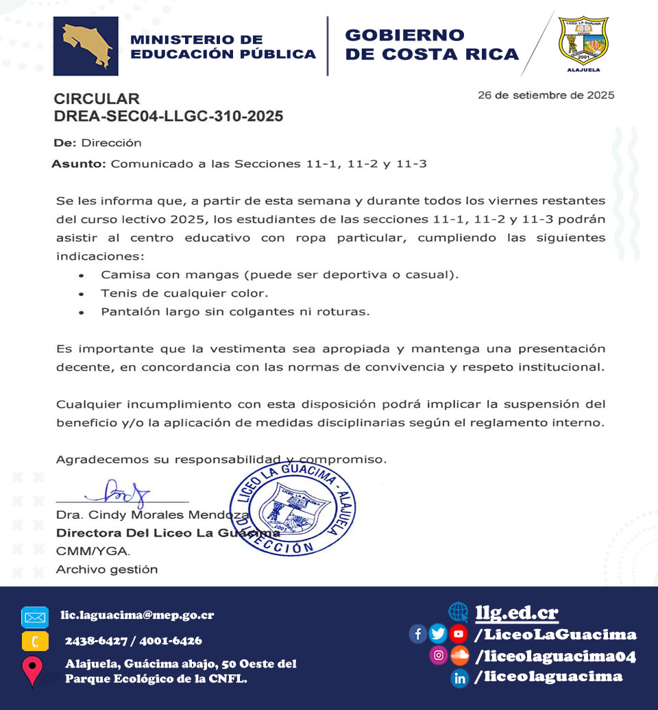 DREA-SEC04-LLGC-310-2025Descarga Navegación de entradas DREA-SEC04-LLGC-307-2025 – Horario diferenciado por congreso SINFUMED 2025 DREA-SEC04-LLGC-311-2025 – Modificación Horaria de las II Pruebas Parciales de Undécimo año