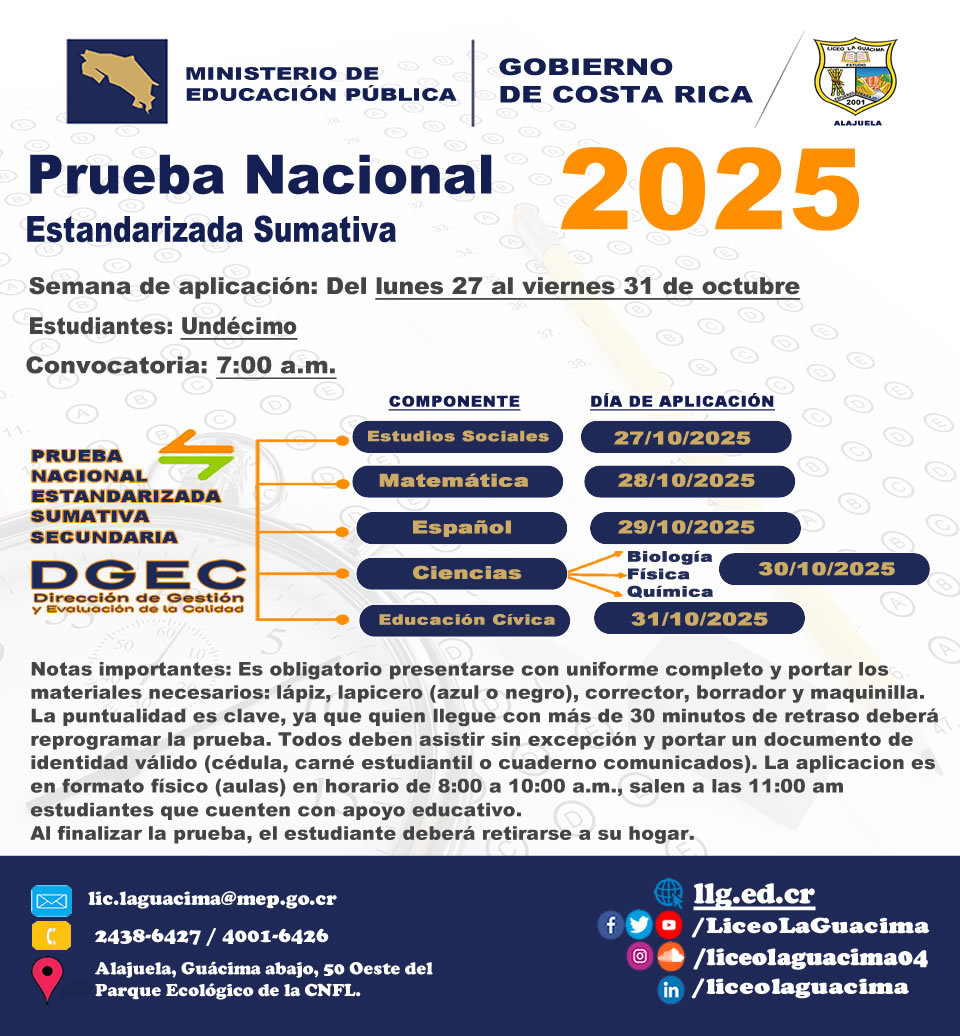 • DREA-SEC04-LLGC-354-2025 – Modificación a horarios por aplicación de Pruebas Estandarizadas Sumativas 2025