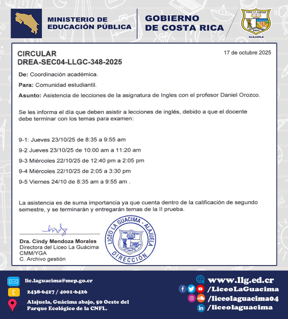 DREA-SEC04-LLGC-348-2025 – Asistencia de lecciones de la asignatura de Inglés con el profesor Daniel Orozco para 9°