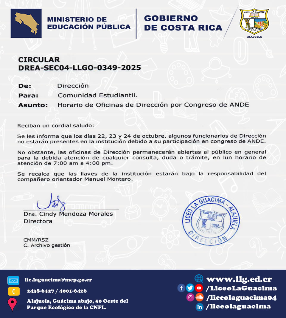 DREA-SEC04-LLGC-349-2025 – Horario de oficina dirección del 22 al 24 octubre por ANDE
